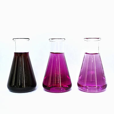 Pierwsze zdjęcie przedstawia pigment rozpuszczony w różnych stężeniach w czystej wodzie, drugie postać sypką barwnika.